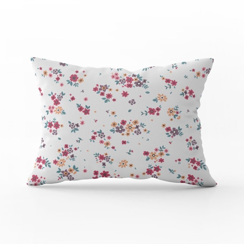Estampado Vita Cereza con pequeños ramilletes florales en fucsia, coral y malva, hojas verde azulado; estilo alegre, delicado y fresco que llena el dormitorio de vitalidad y ternura.