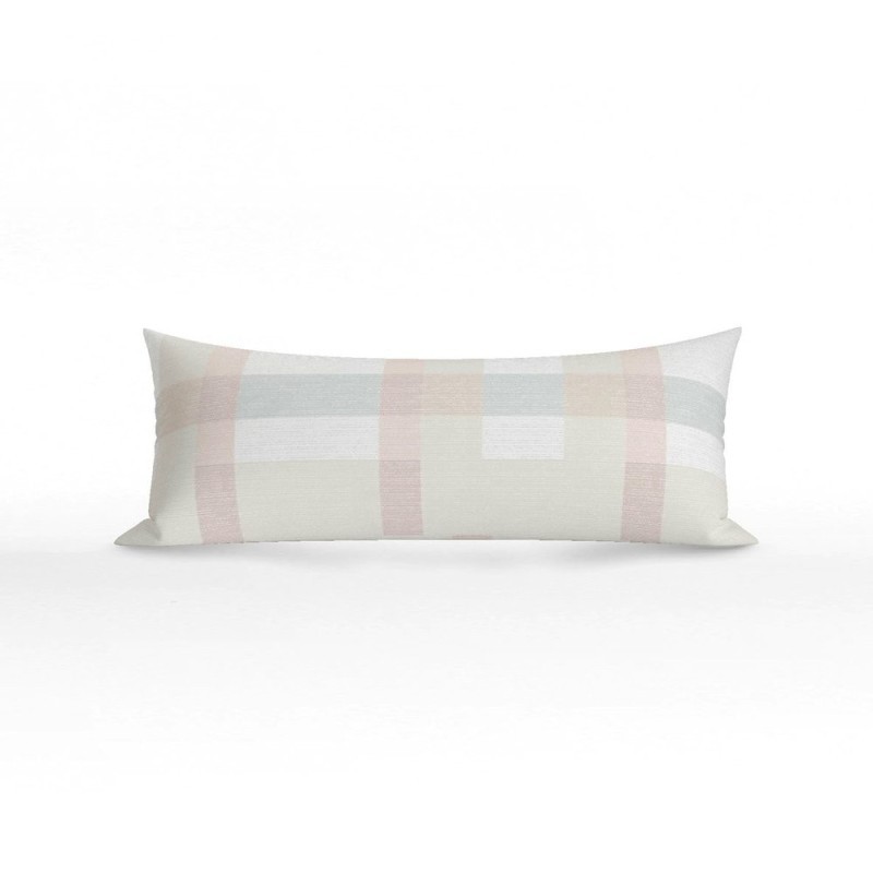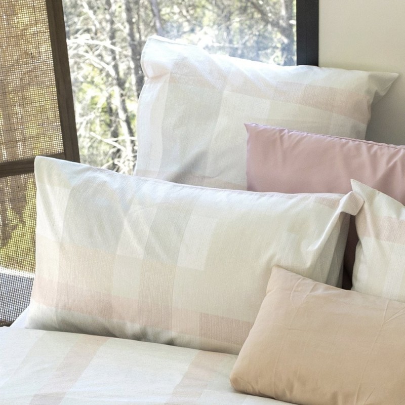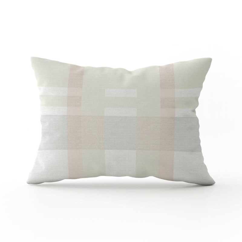 Estampado en marfil, rosa empolvado y gris perla; textura tipo lino, cuadros suaves y efecto lavado. Estética cálida, minimalista y atemporal.