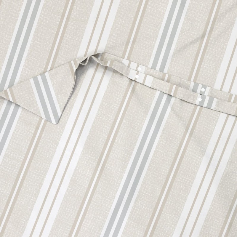 Funda nórdica en tejido tafetán de algodón combinado de 144 hilos, suave y resistente para el uso diario, con práctico cierre de botones a presión que facilita su colocación y garantiza un buen ajuste.
