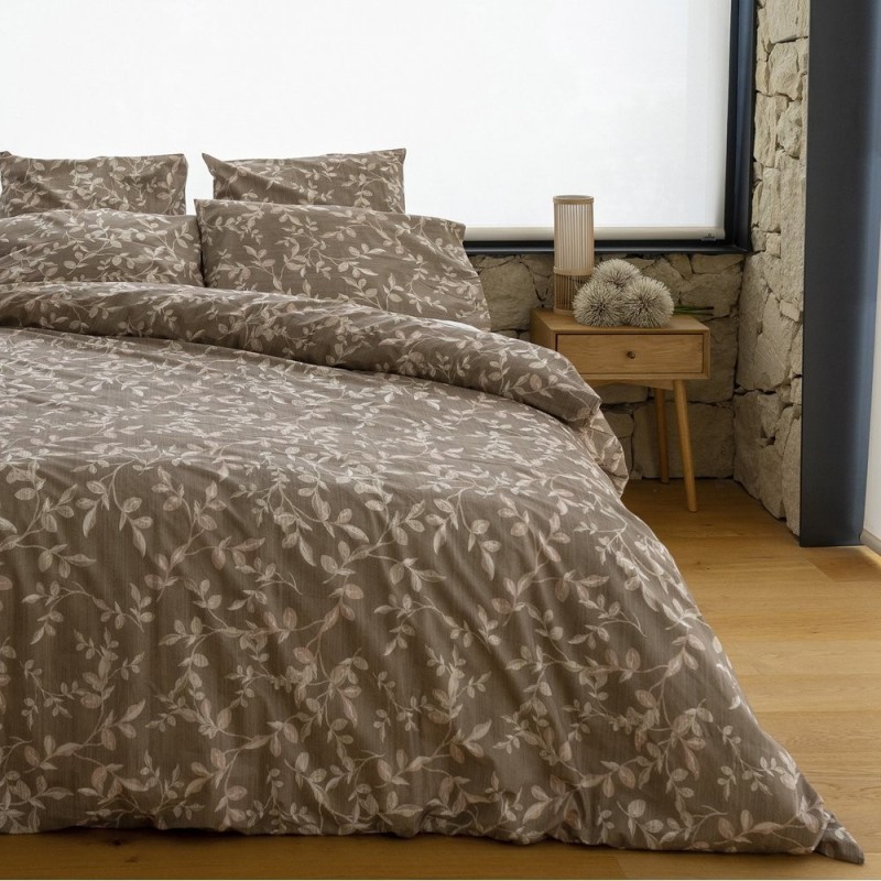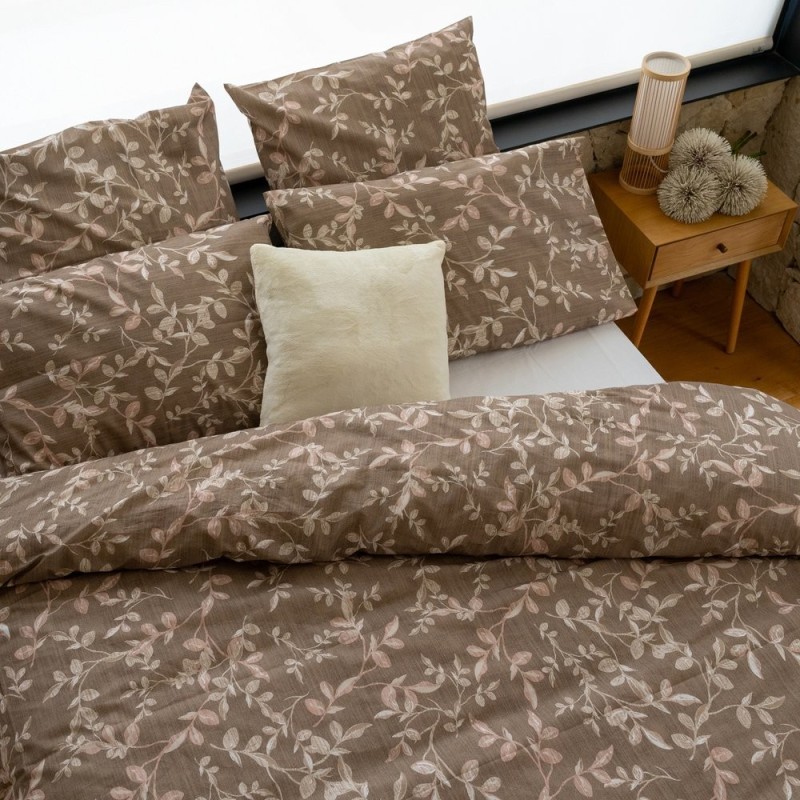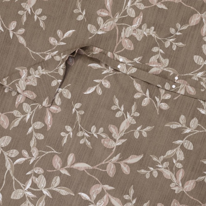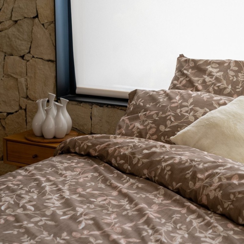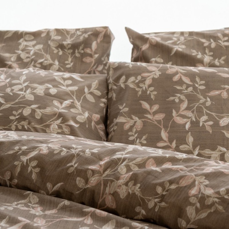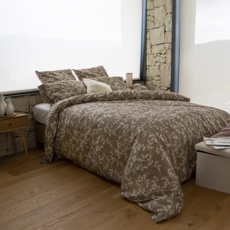 El estampado Sera Carrasca reinventa el magnetismo cromático con sutileza: un fondo taupe profundo sirve de escenario para ramas y hojas en rosa empolvado y blanco perlado, creando un contraste elegante y contenido. Su paleta intensa pero refinada aporta carácter sin estridencia, combinando dramatismo y delicadeza romántica. Ideal para quienes buscan una presencia sofisticada en el dormitorio, transforma la cama en un punto focal con alma y personalidad, invitando a soñar con estilo y pasión.