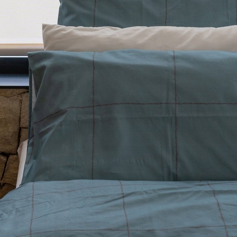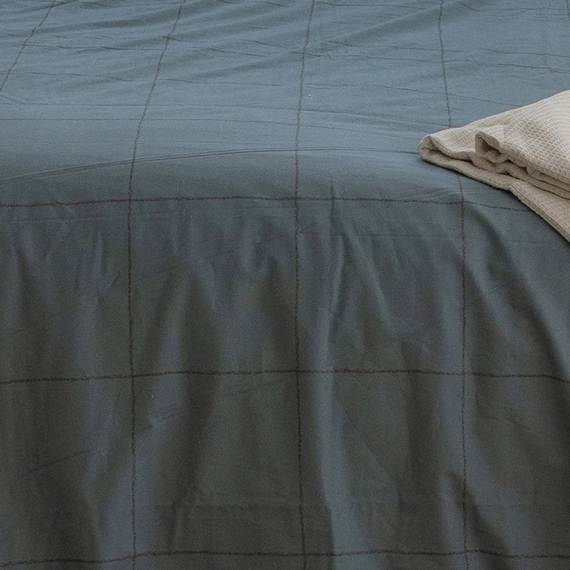 El estampado Filo Azulón combina magnetismo y sobriedad con una cuadrícula dibujada a mano en tonos azul grisáceo, donde la intensidad del color aporta presencia sin estridencia. Las líneas ligeramente texturizadas crean ritmo y profundidad, aportando carácter contemporáneo y elegante. Pensada para quienes buscan un punto focal con personalidad, equilibra dramatismo y serenidad, transformando la cama en un escenario sofisticado y acogedor donde descansar y soñar con estilo.