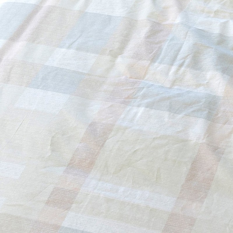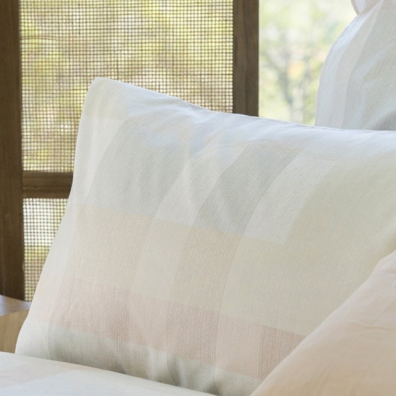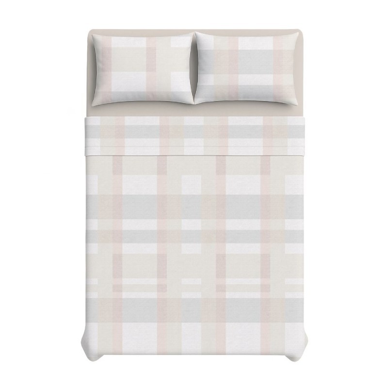 Estampado en marfil, rosa empolvado y gris perla; textura tipo lino, cuadros suaves y efecto lavado. Estética cálida, minimalista y atemporal.